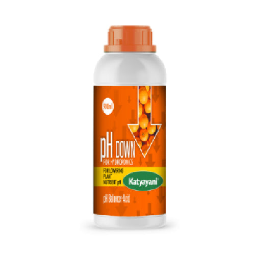 - Katyayani pH Down can be used for all kinds of Hydroponic nutrients. It doesn’t leave any unwanted residues or elements, hence safe for plants. It significantly improves nutrient absorption in the root zone.