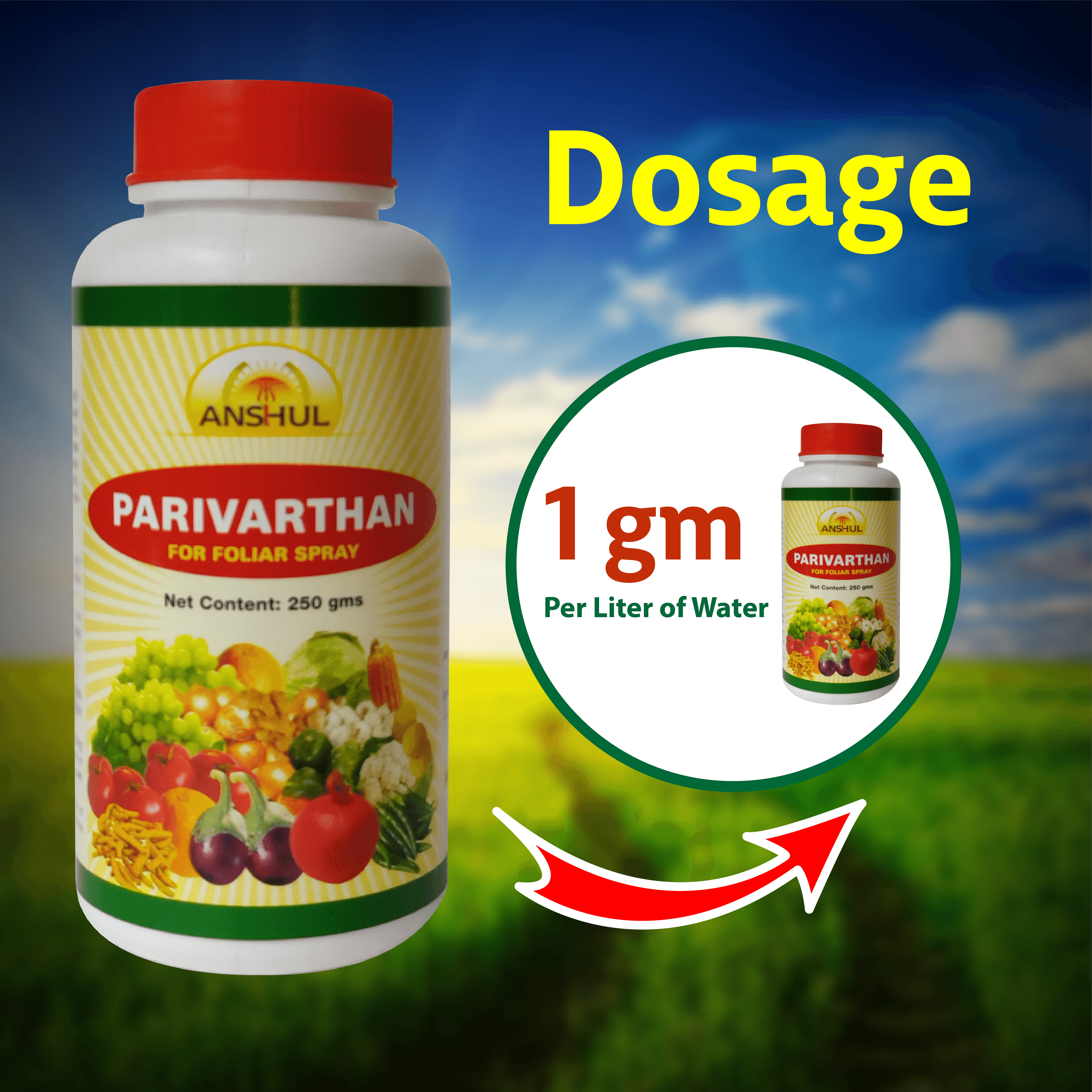 Product Description /Benefits: Parivarthan Contains all the nutrients in chelated form and hence they are easily absorbed by plants. Corrects the existing micronutrient deficiency in plants and takes care of the requirement of nutrients in different growth stages of plants . Increases flowering and fruit setting and also helps in preventing premature dropping of flowers and set fruits .Helps in increasing the crop yield.