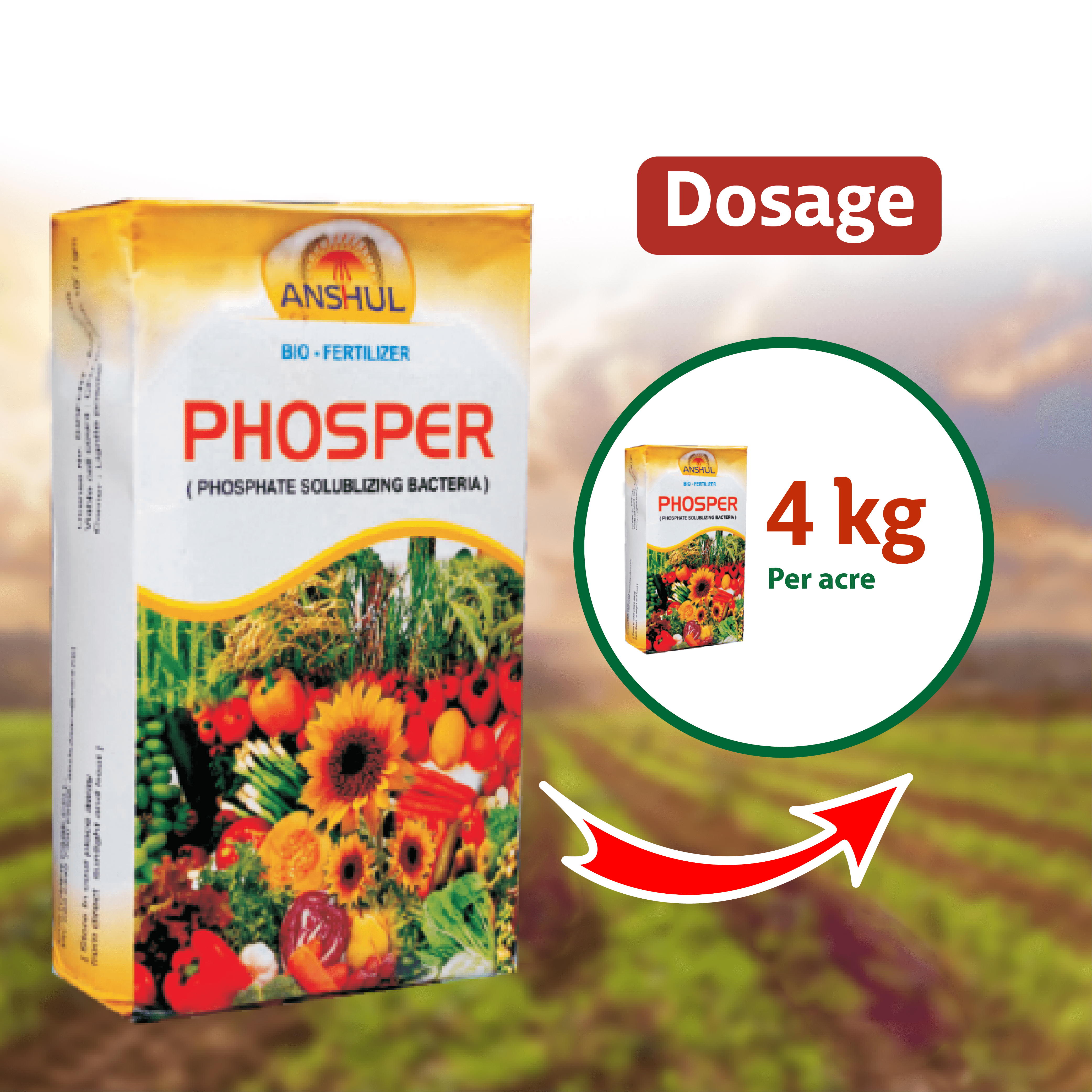 Dosage: Anshul Phosper 250 ml - 500 ml or 2 kg should be mixed in 100 kg well-decomposed farmyard manure or Anshul Compact and broadcast in an acre of land.