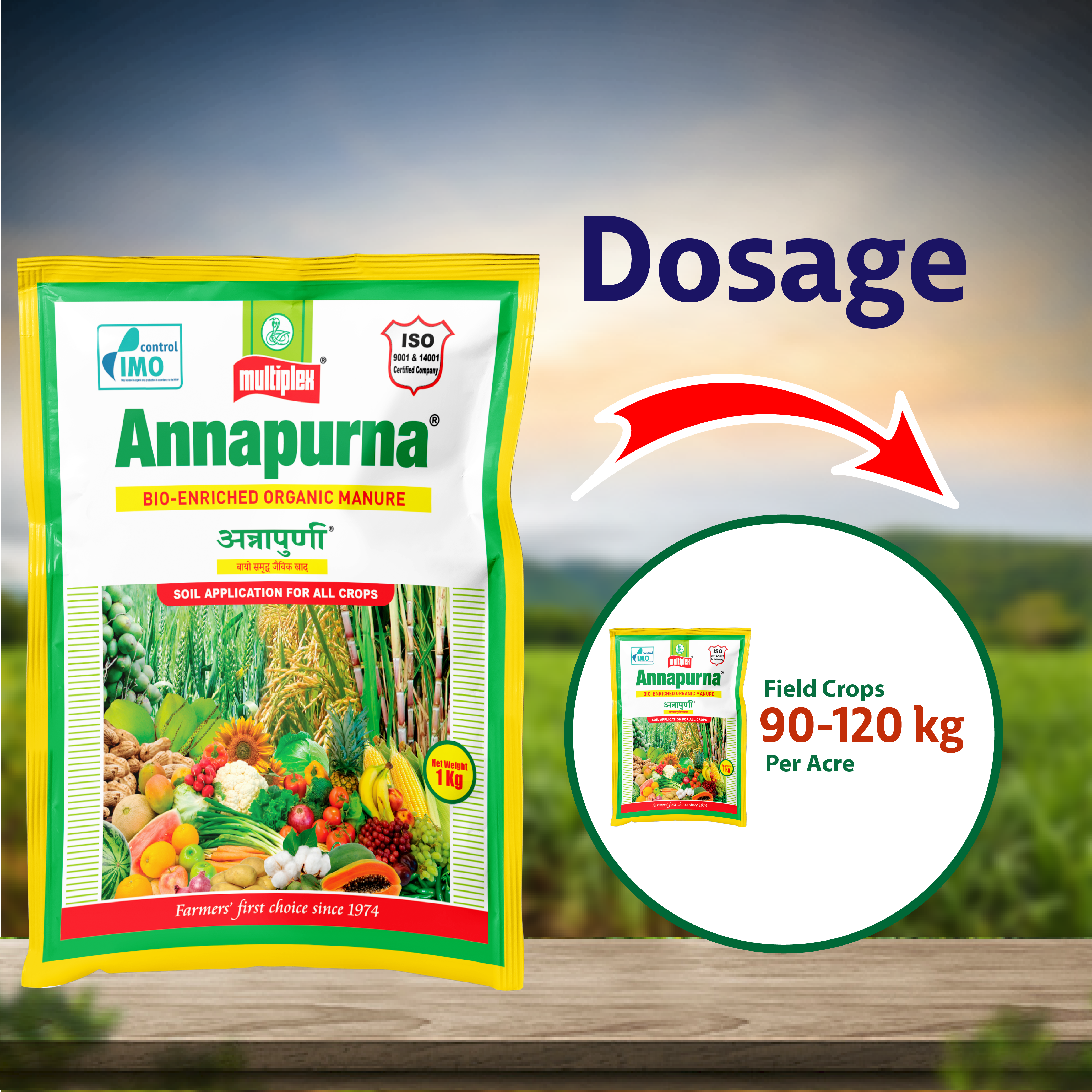 For field crops: Use Multiplex Annapurna @ 90 -120 kg/acre;