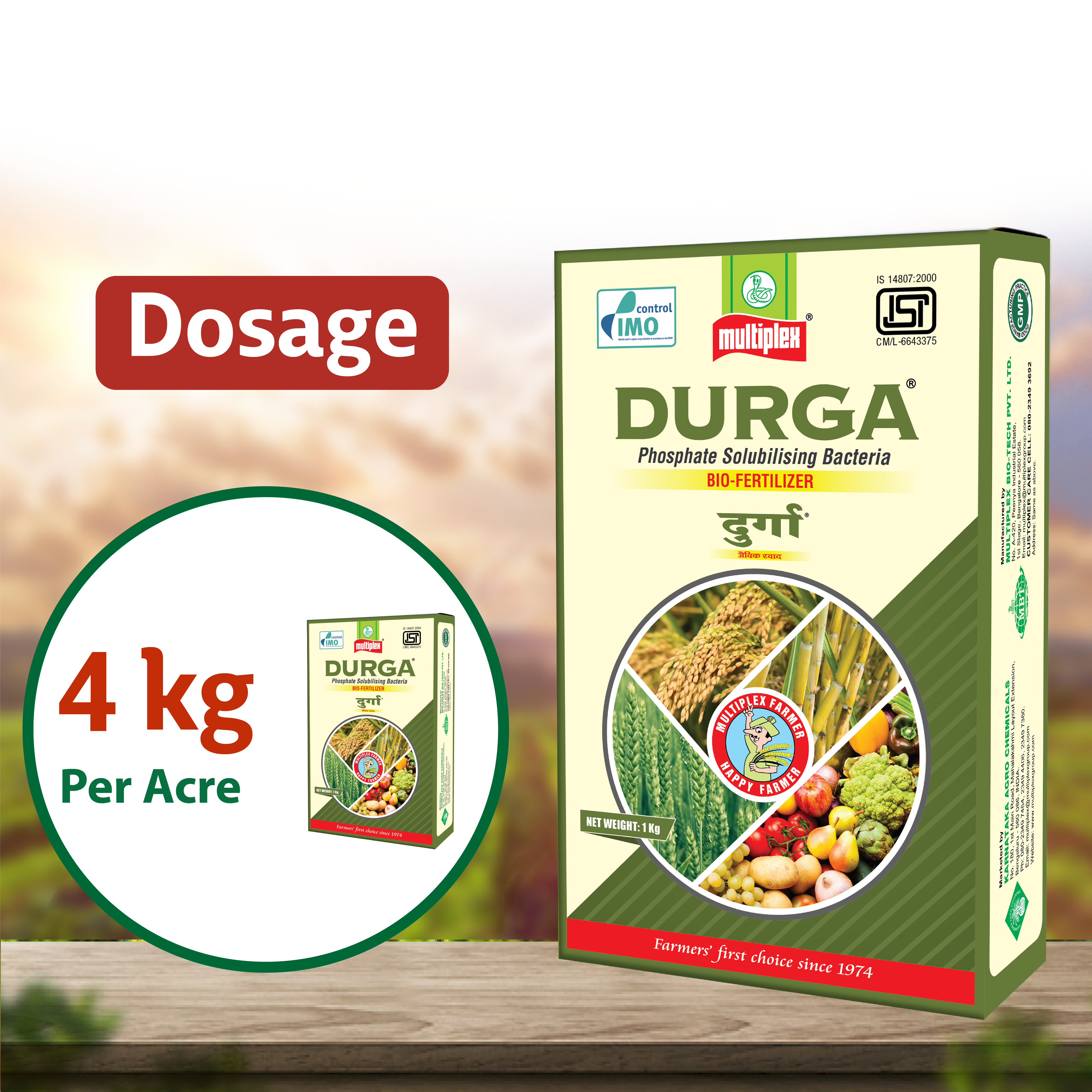 Dosage: Mix @ 250 ml or 2 kg of Multiplex Durga Liquid with 100 kg of well decomposed farm yard manure or Multiplex Annapurna and broadcast