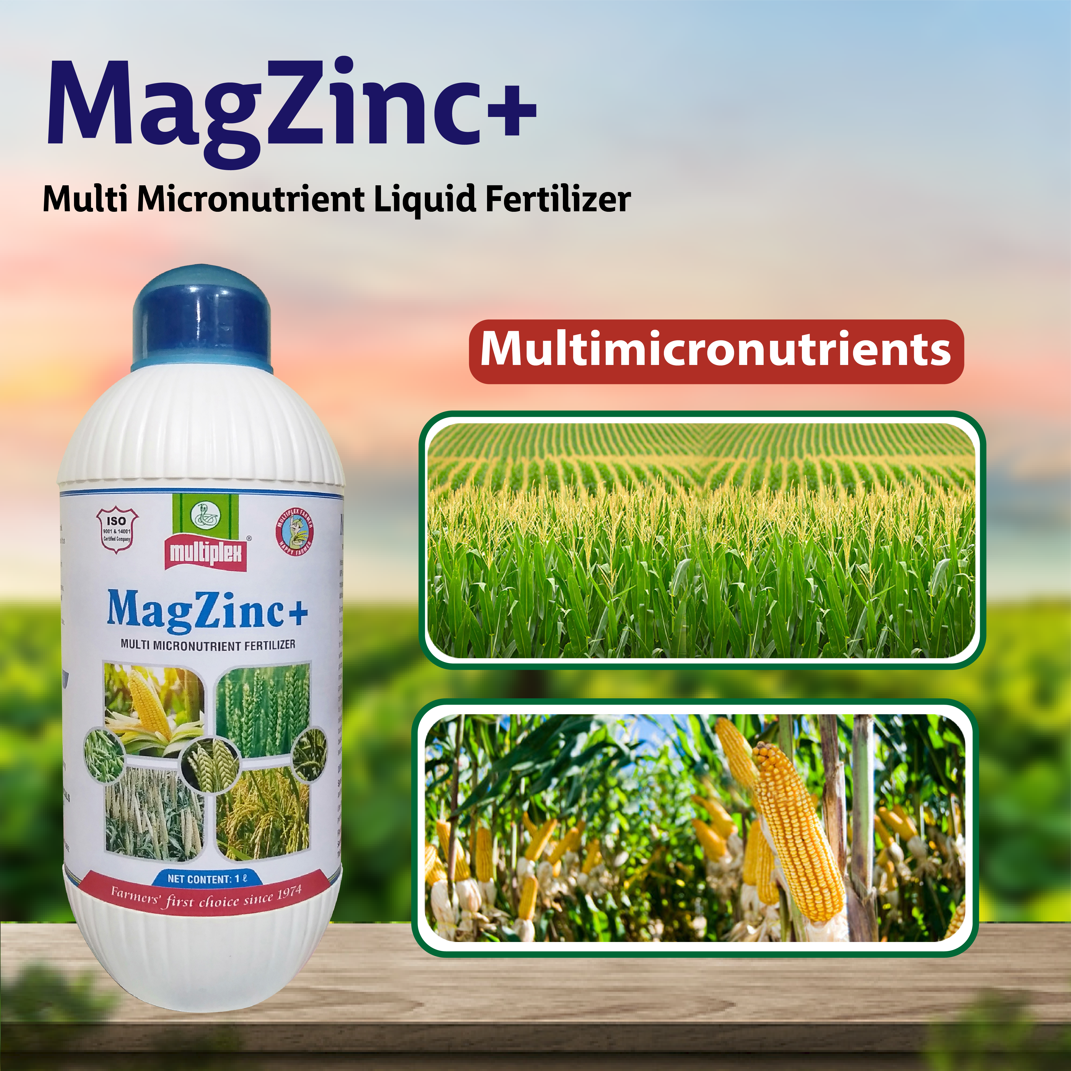 Product Description: Multiplex MagZinc+ is a Multi Micronutrient Liquid Fertilizer.  MagZinc+ Keeps the plant healthy, improves drought and disease resistance in plants. It helps in uniform maturity, size, colour, shape and enhances sweetness in fruits. Improves the yield both by quality and quantity.