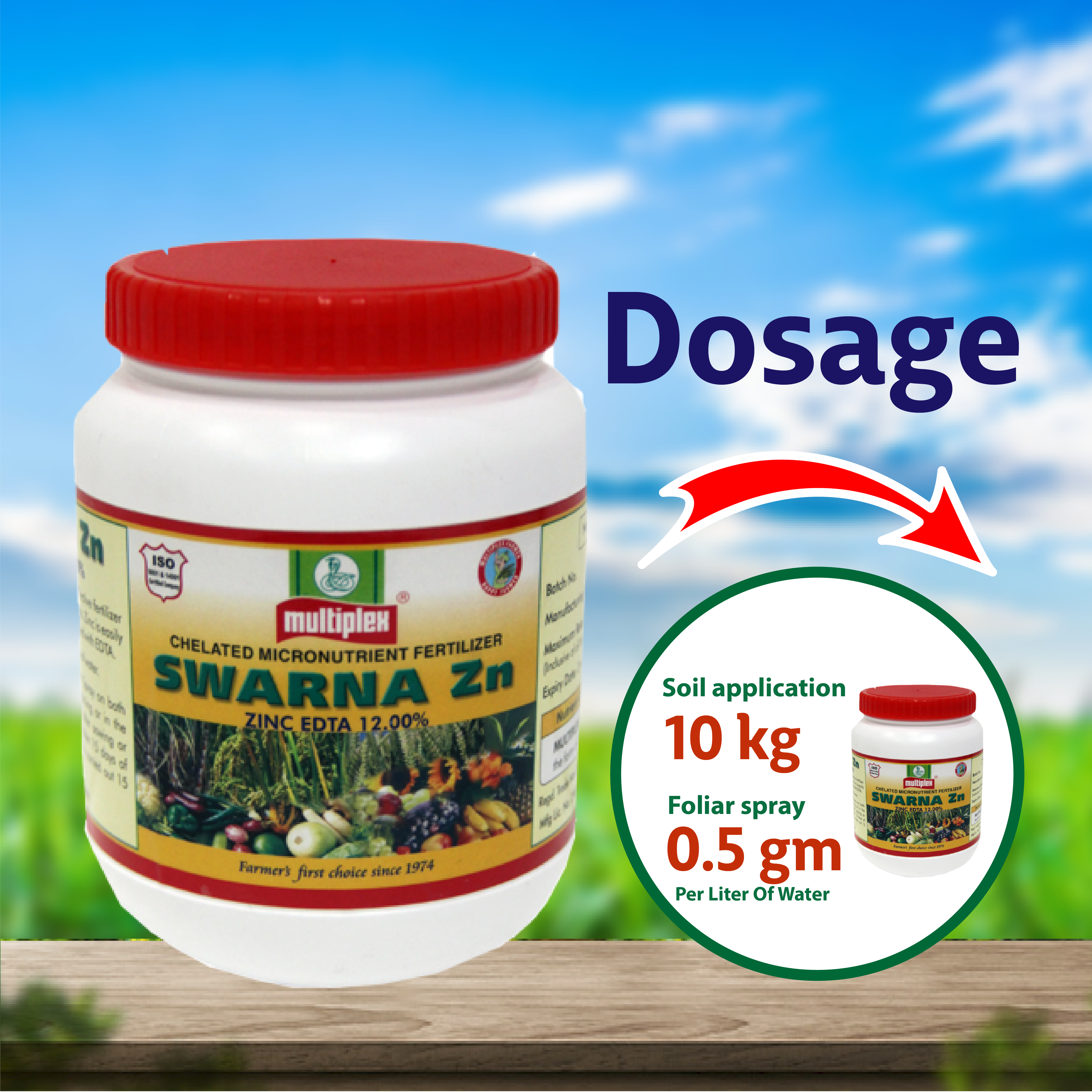 Dosage: Soil application - Use Multiplex Swarna Zinc 10kg/acre,