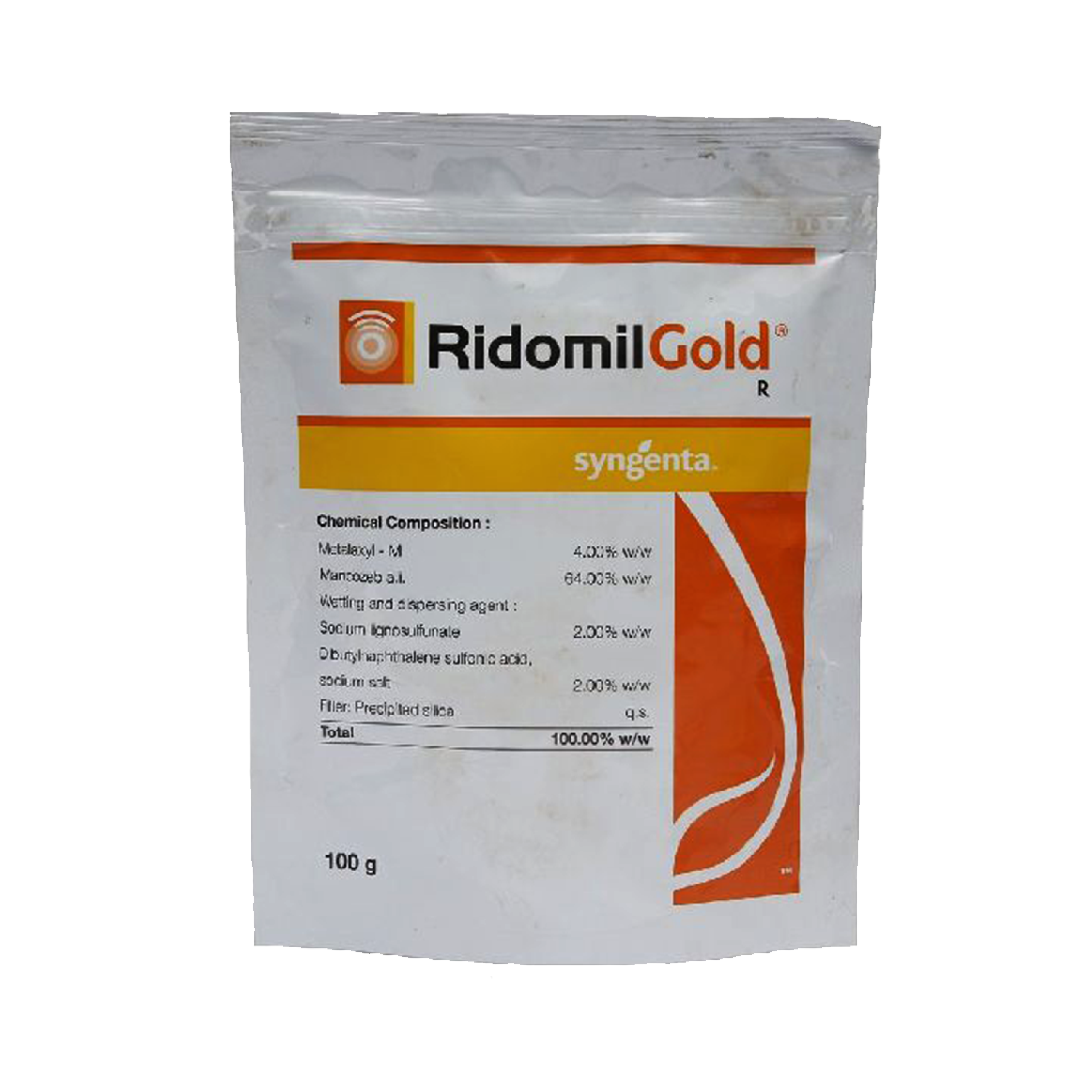 Ridomil Gold is a broad spectrum fungicide which contains unique combination of Metalaxyl 4% and Manconzeb 64%. Ridomil Gold provides excellent crop protection due to hyper-systemic uptake and translocation properties.
