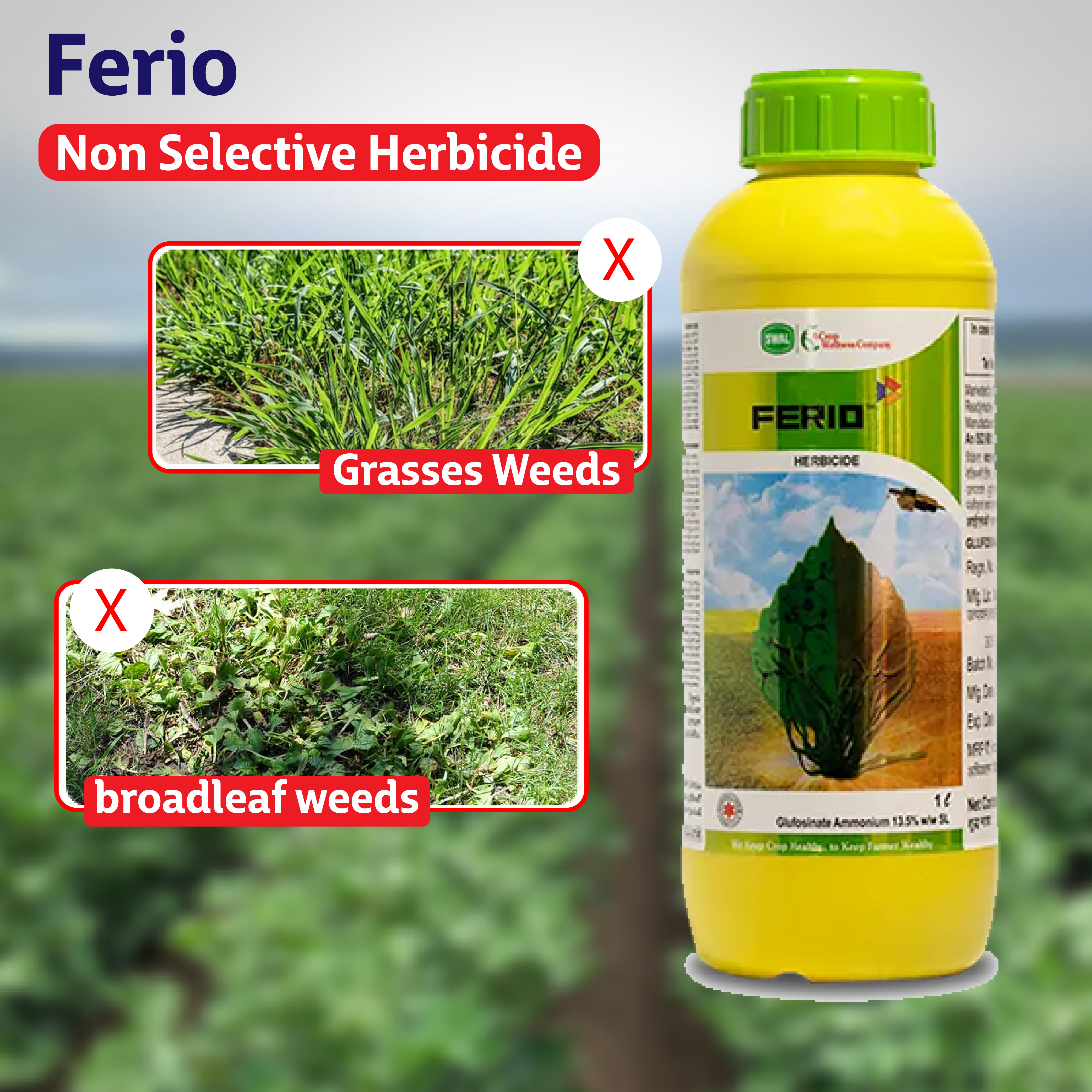 • Ferio has got broad-spectrum efficacy that can control broad leaf and grassy weeds.