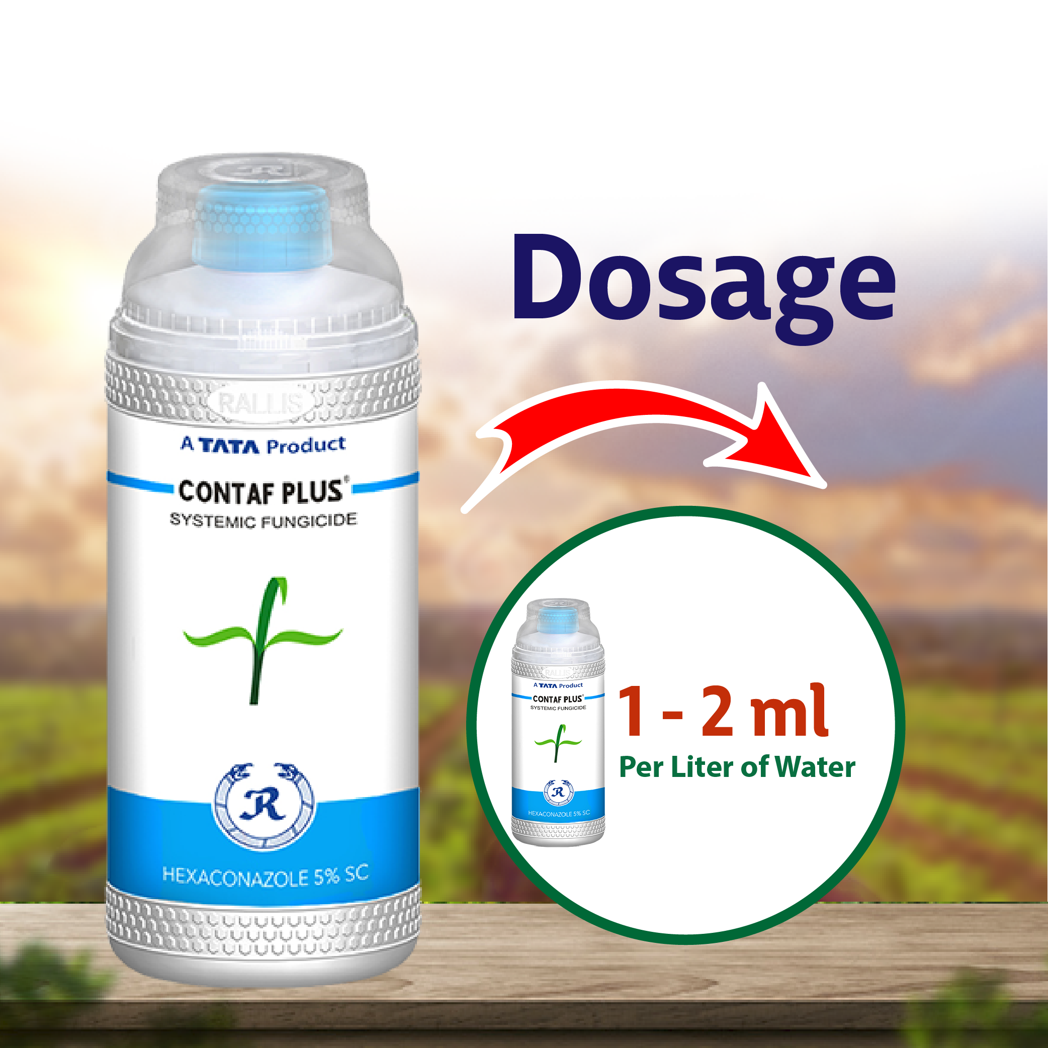 - Contaf Plus is a systemic triazole fungicide. Contaf Plus has broad-spectrum action against ascomycetes, basidiomycetes and fungi imperfection. Contaf Plus is an ergosterol biosynthesis inhibitor thereby controlling growth and reproduction of plant fungal pathogens. It is useful for controlling Powdery mildew, Rust and Leaf spots in cereals, oil crops, horticultural and plantation crops and also for the effective control of Rice Sheath Blight.